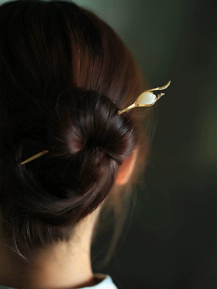 Chinese Traditional Floral Hairpin with Jade & Garnet