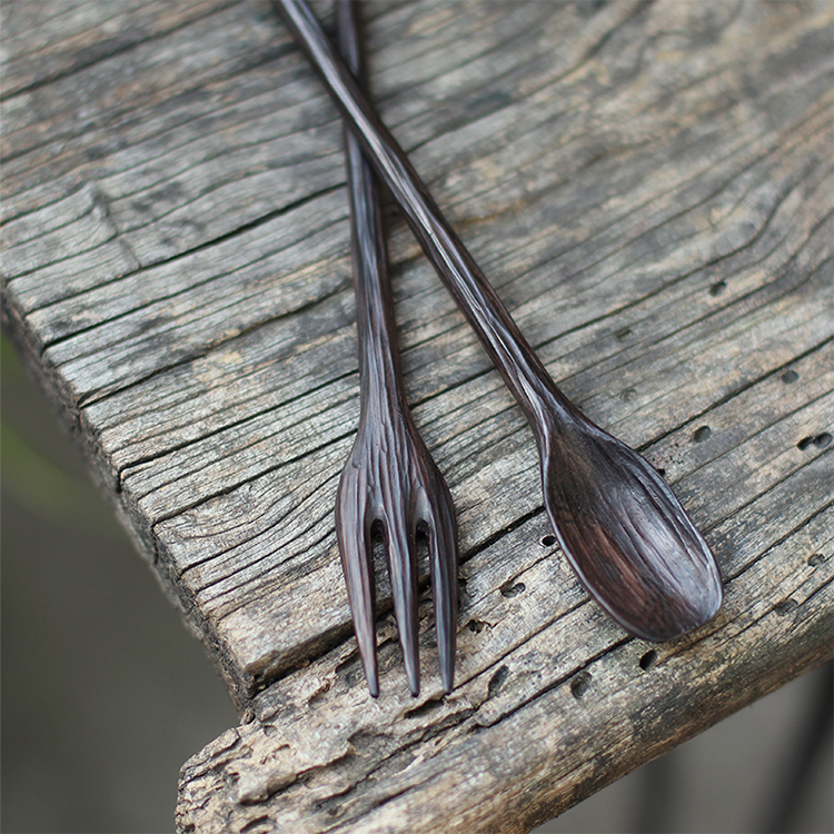 Hand-Carved Wooden Spoon and Fork Hair Stick