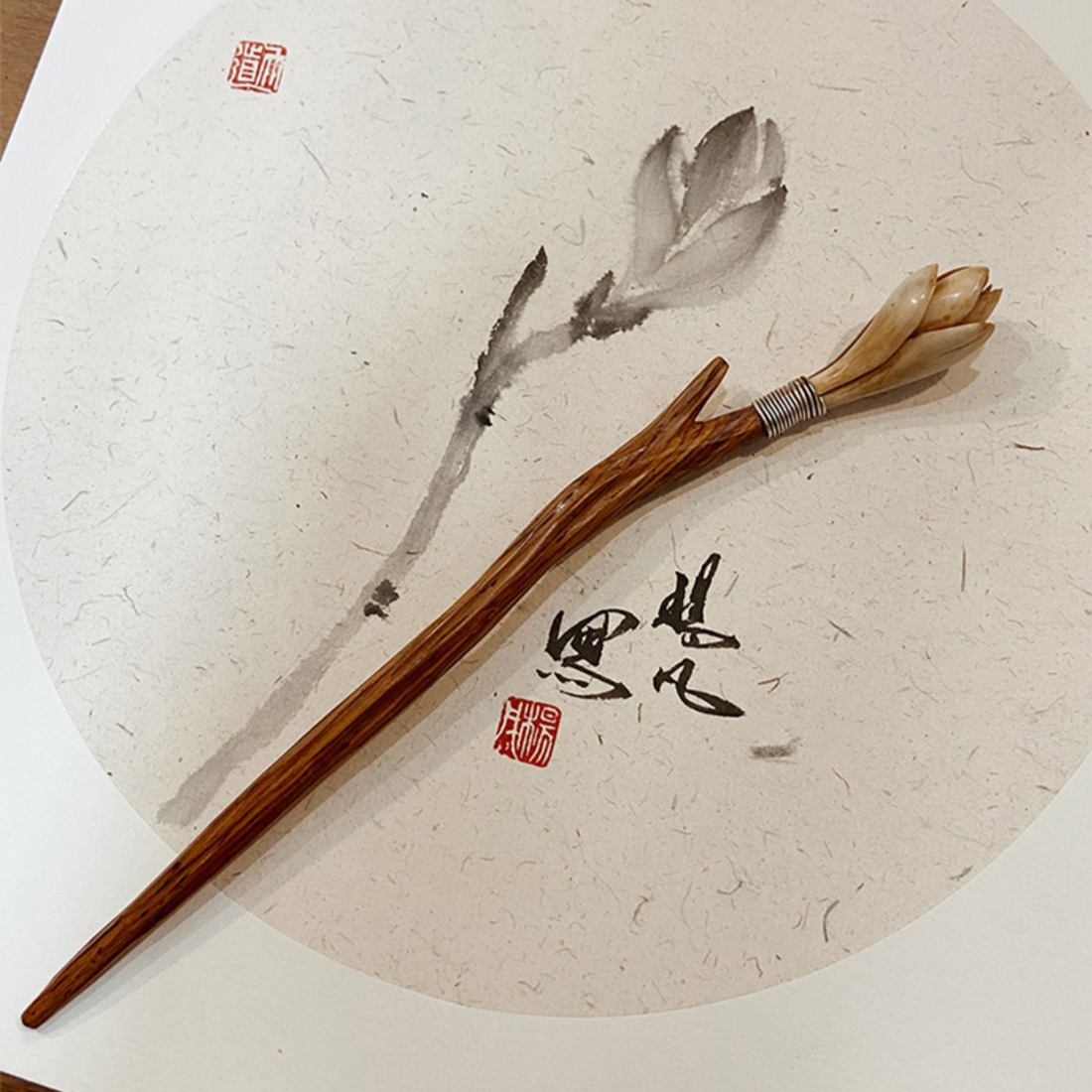 Hand-Carved Hair Stick Inspired by Oriental Zen