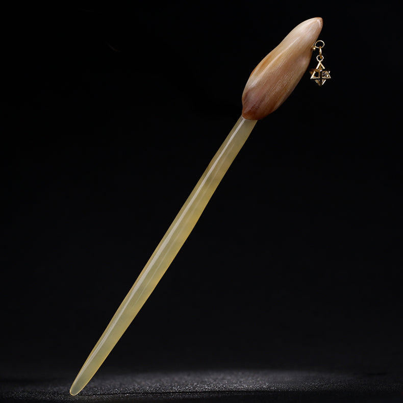 Handmade Horn Hair Stick with Silver Star Pendant
