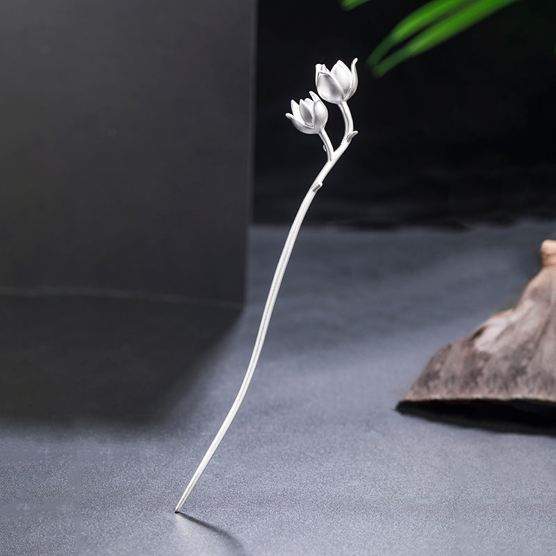 "Twin Lotus" - Silver Hollowed-Out Hair Stick