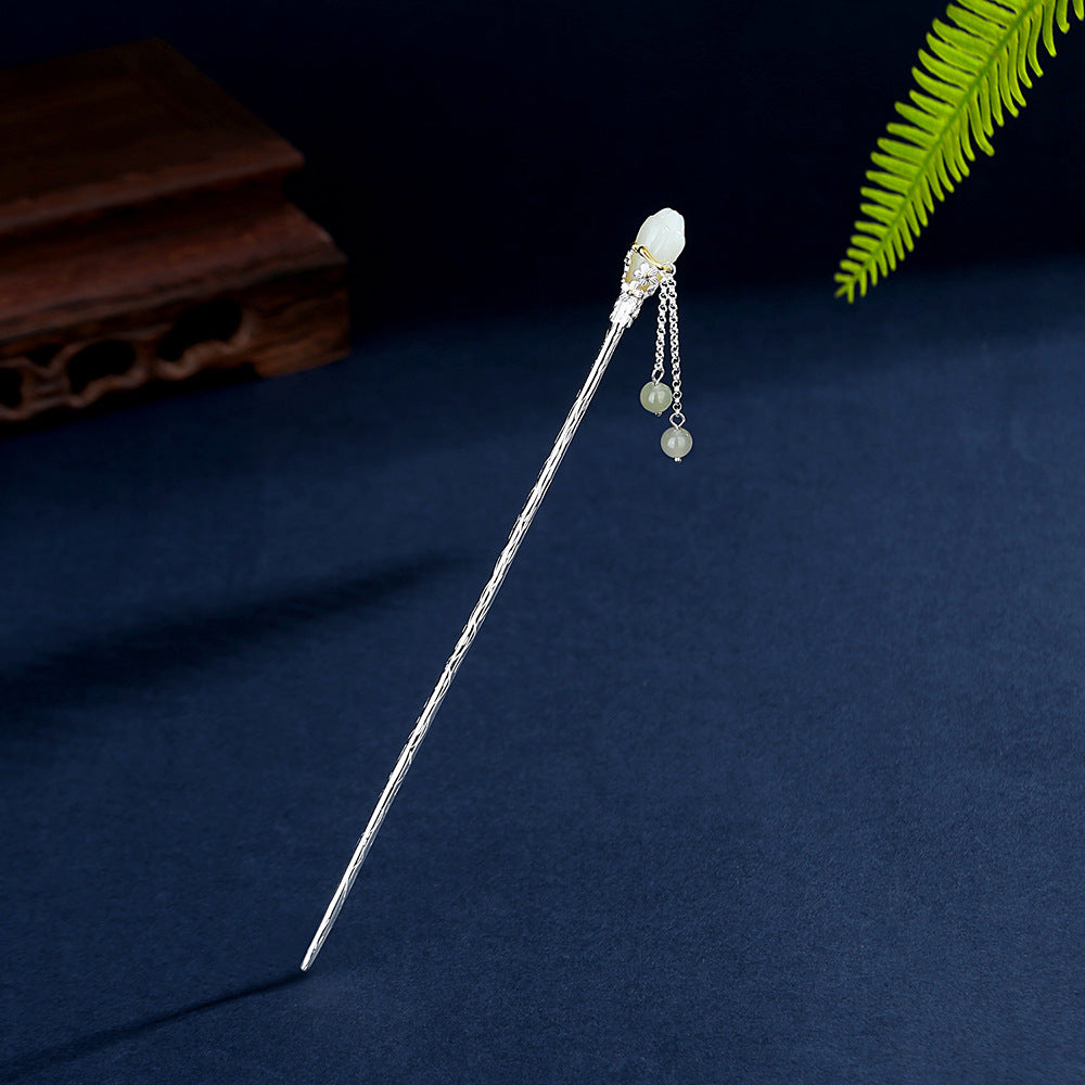 Lotus Leaf Hetian Jade Silver Hair Stick