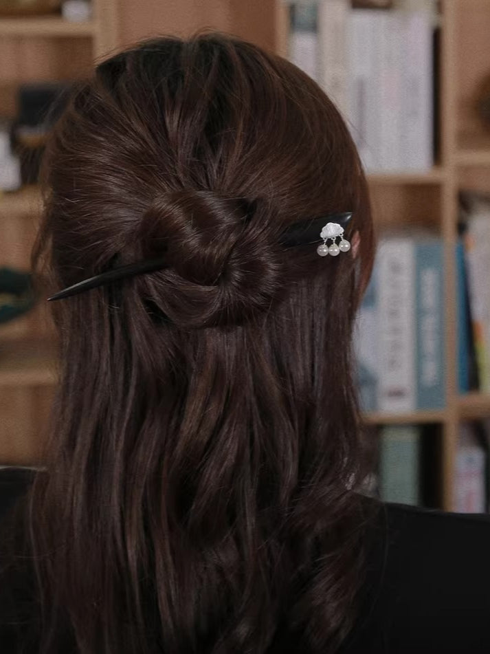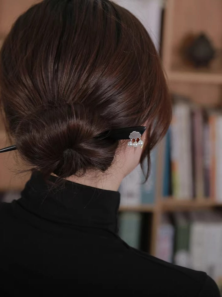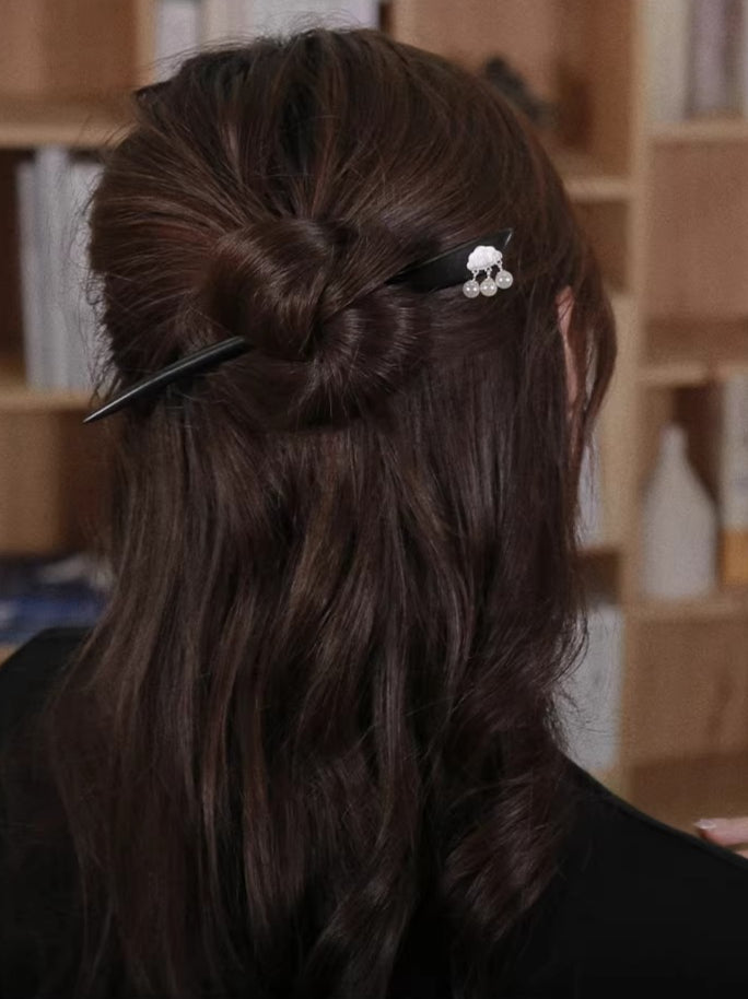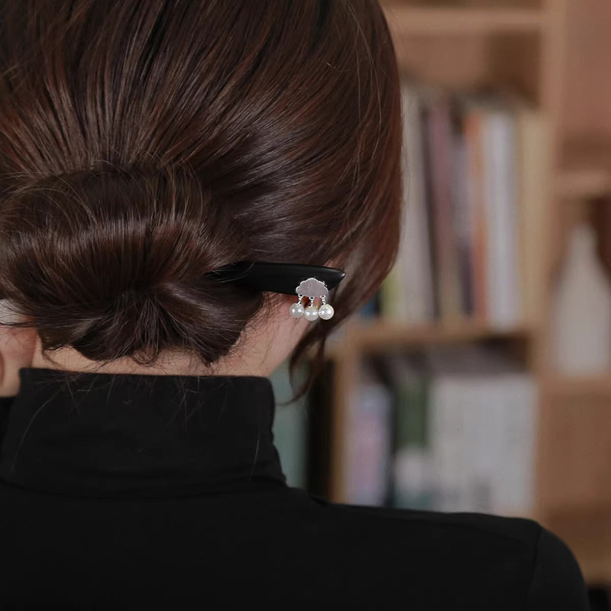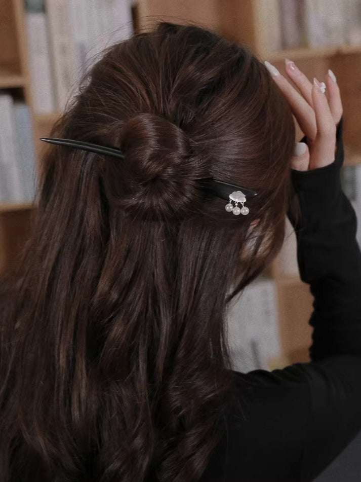Design: Beautiful handcrafted hair stick made of black sandalwood with a delicate S925 silver piece and freshwater pearl pedant. This hair stick is perfect for everyday bun styles or special occasions. The combination of warm wood grain and shiny pearl creates an elegant, understated look.