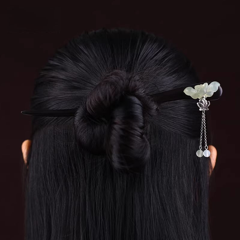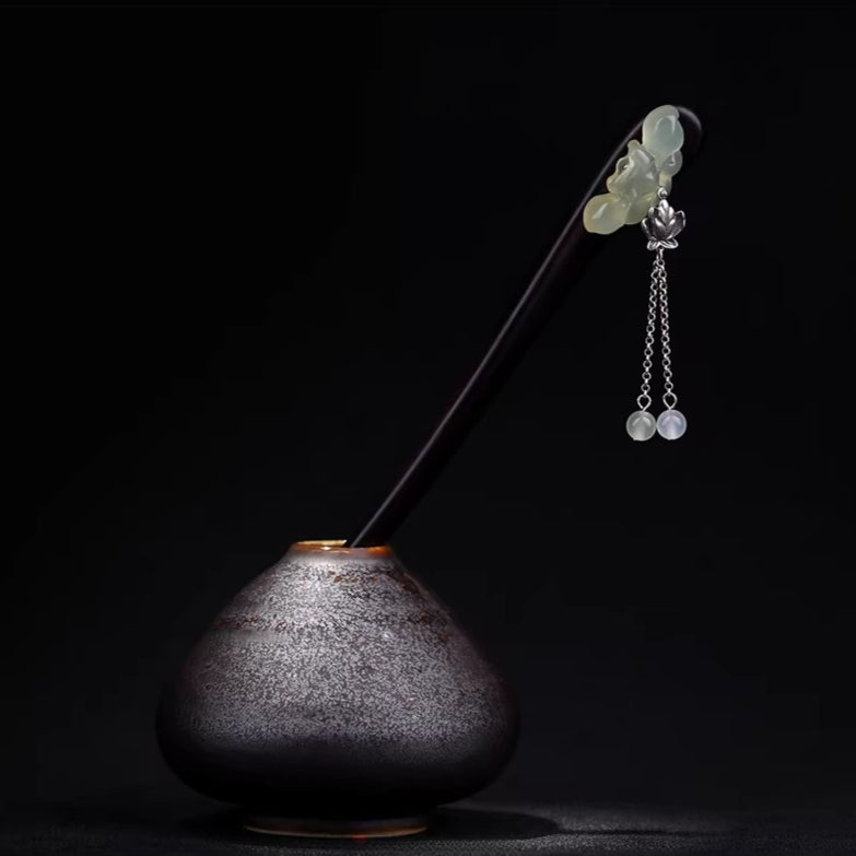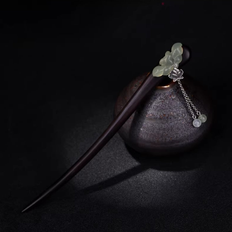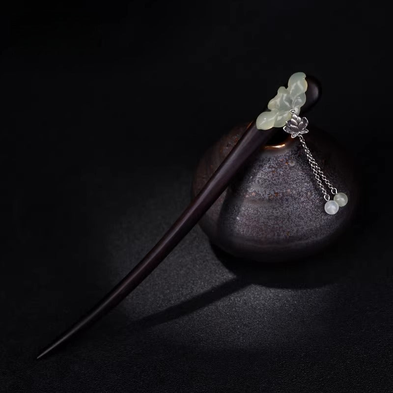 Black Wood Xiuyan Jade Hair Stick