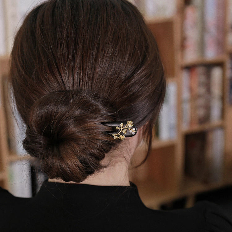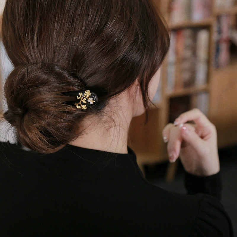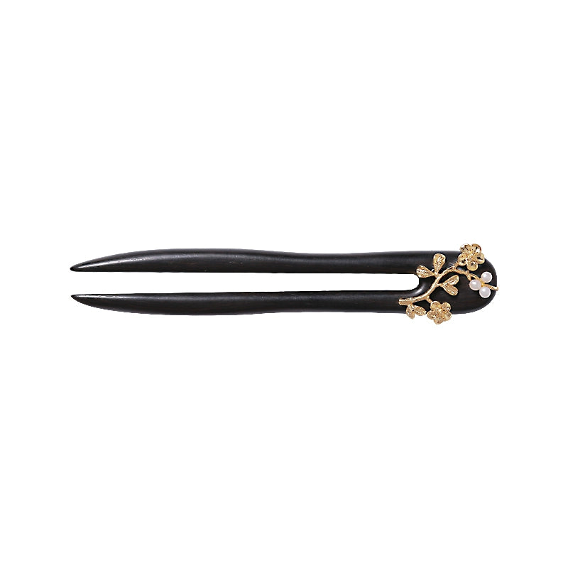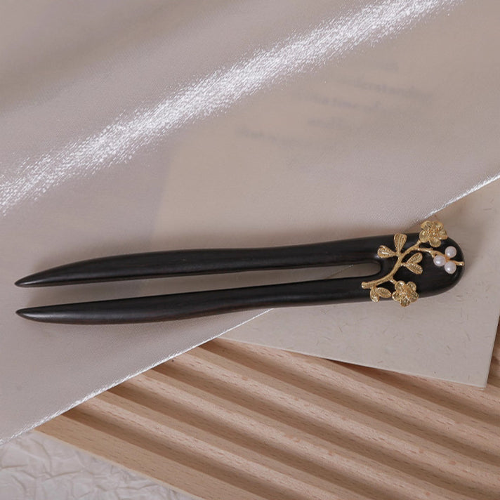 Floral U-Shaped Wood Hair Fork