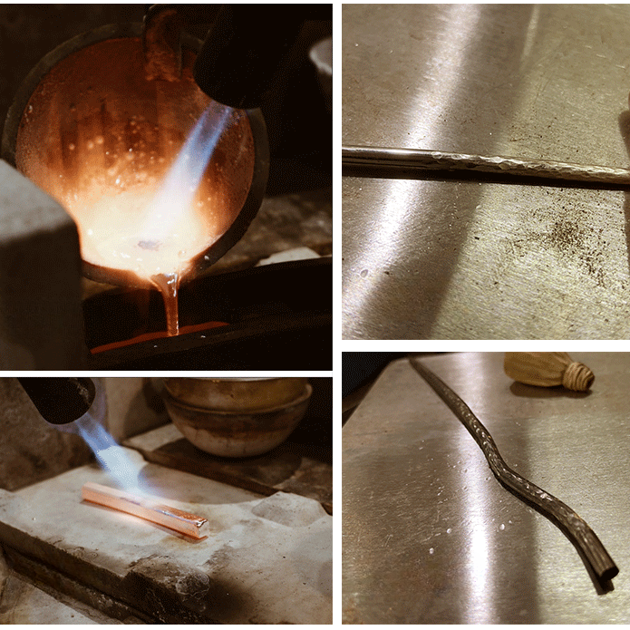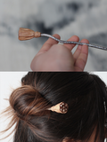 Handcrafted Hair Stick with Hammered Texture and Sandalwood Carving