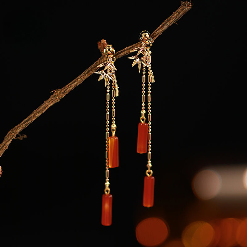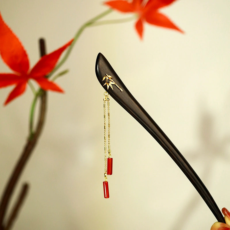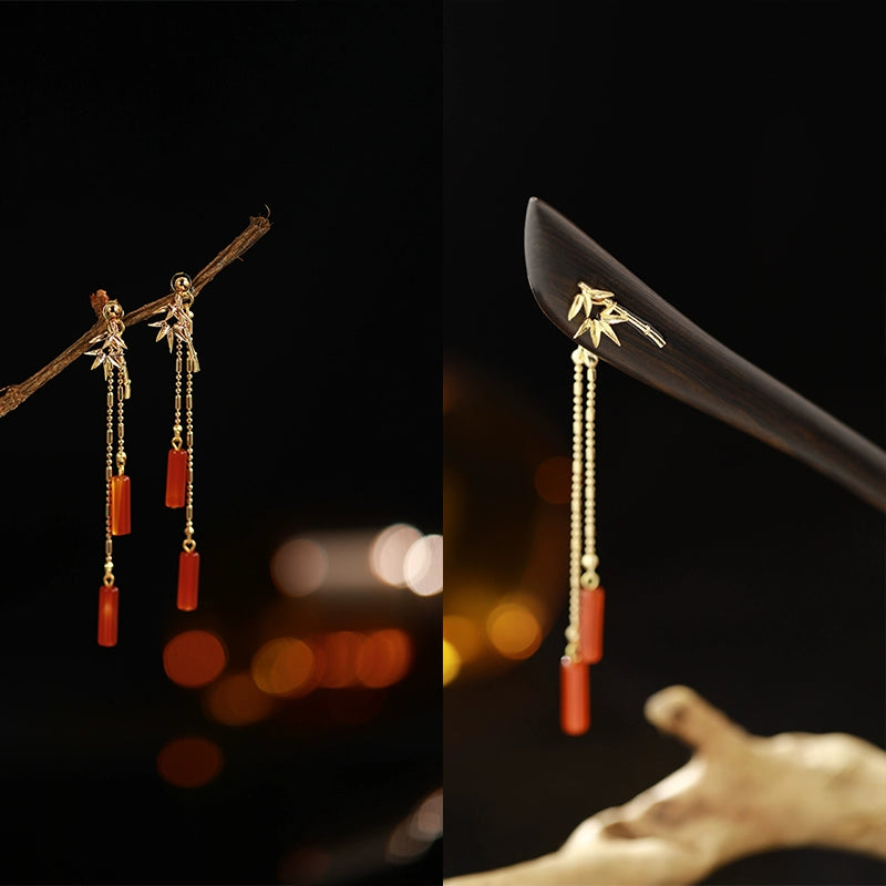 Design: In Chinese tradition, bamboo symbolizes the resilience of life. It is graceful, delicate, and evergreen, triumphing over adversity. The hollow nature of bamboo signifies humility, a character that stands tall with modesty. Indifference, loftiness, and integrity reflect the pursuit of Chinese scholars - a solitary figure amidst the cliffs. We've also designed matching Bamboo Shadow Earrings to complement the hair stick beautifully.