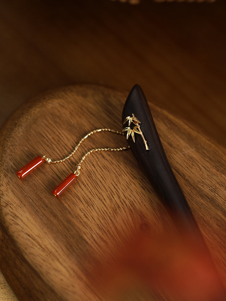 Materials: Ebony Wood, Red Agate, Gold-Plated Copper Accessories