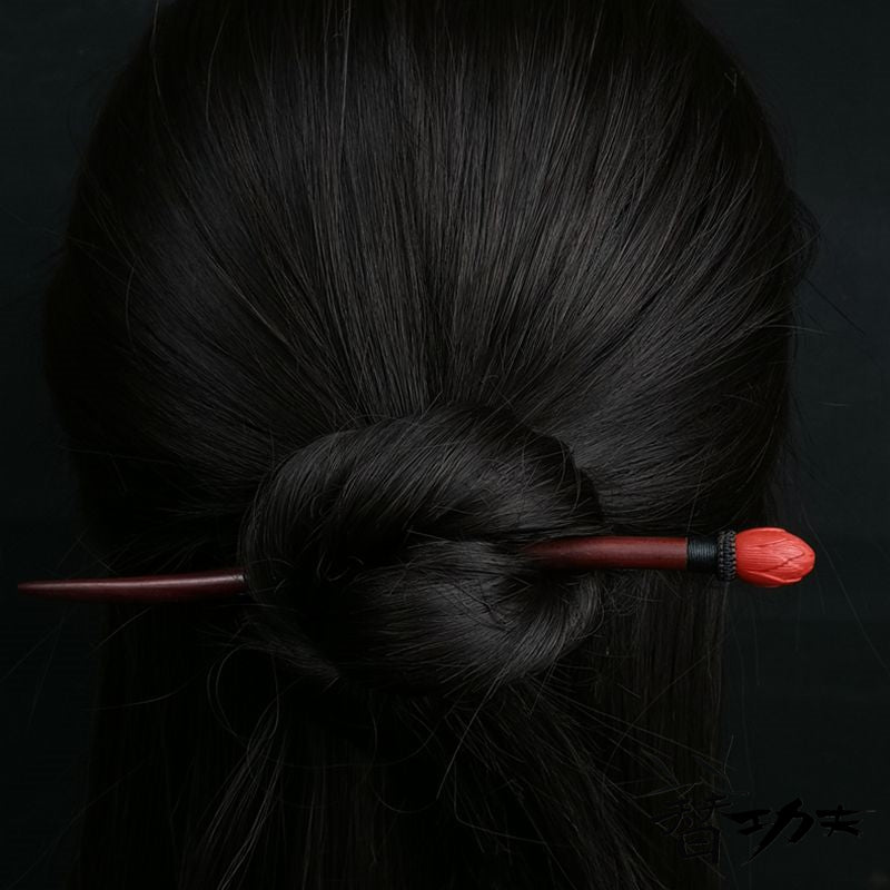 Handmade Cinnabar Flower Hair Stick