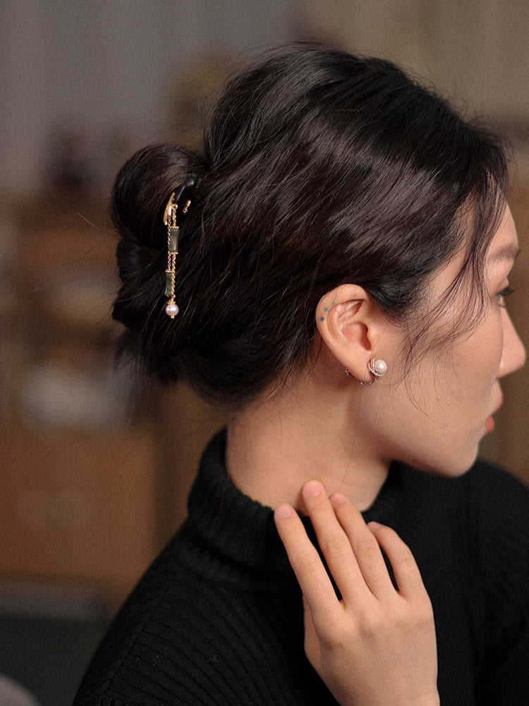 Material: Ebony, jade, freshwater pearls