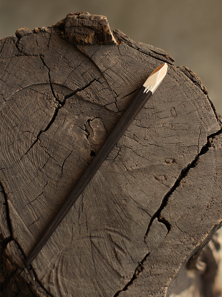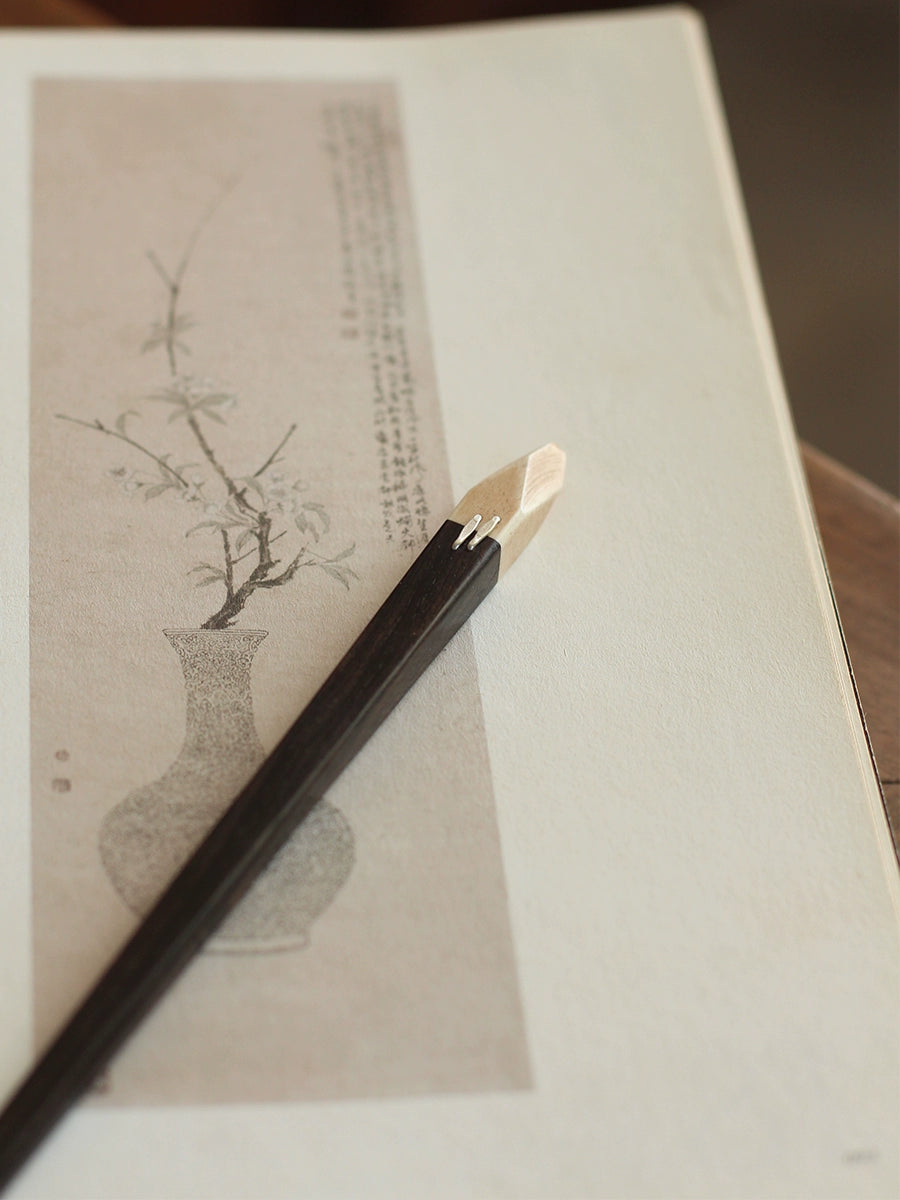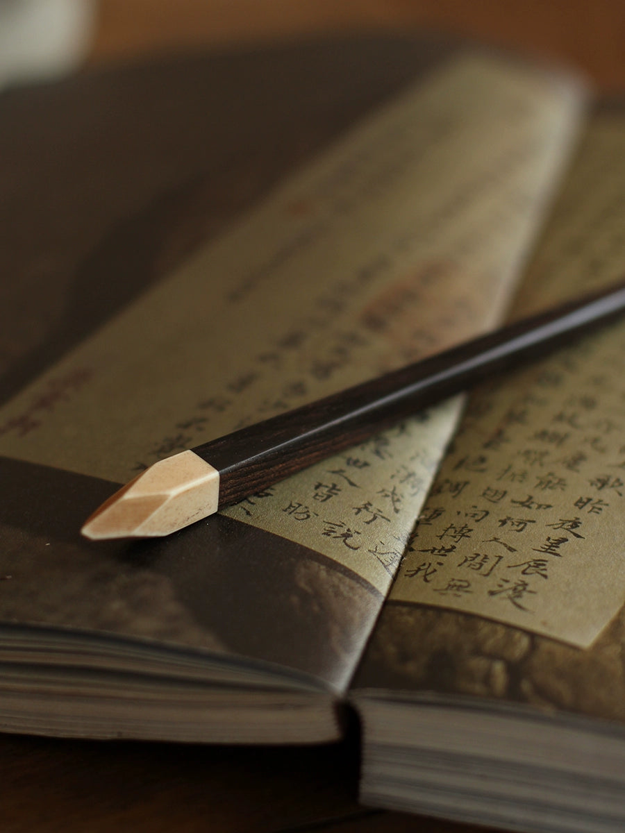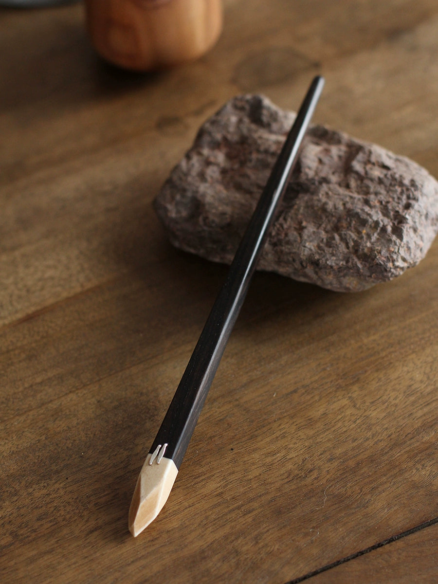 Design: "The Hidden Hero" is a small series that began design a few years ago, featuring a neutral and simplistic style. This particular design, named "Thousand Mechanisms," simplifies complex facets into basic elements, embodying the concept of "endless changes without losing the essence." It shares its lineage with its sister model "Thousand Facets," both serving as fundamental poles suitable for beginners. The material combination of ebony, deer antler, and silver, enriched by tea staining and silver riveting techniques, enhances its rustic texture.
