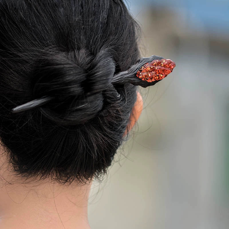 Notes: Handmade imperfections add character – not for perfectionists! Crafted with a seamless resin-zitan wood joint (not glued after shaping), this hair stick is built to last! Even after multiple drops, mine's still holding strong.