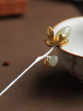 Design: The lotus on this hairpin is carved from natural Hetian jade—it's so smooth and lustrous. The jade is securely inlaid, so you don't have to worry about it falling off. The whole piece is made with handcrafted S925 sterling silver and finished with an ancient-style gold finish—it has such an elegant, high-end vibe!