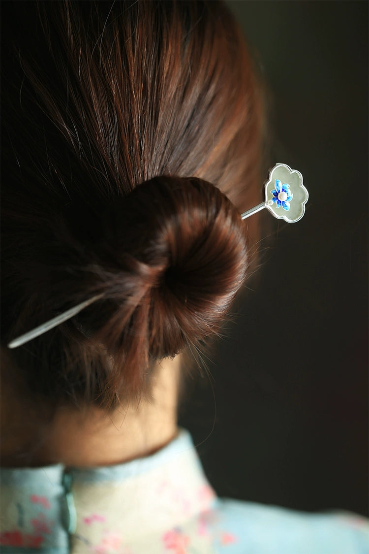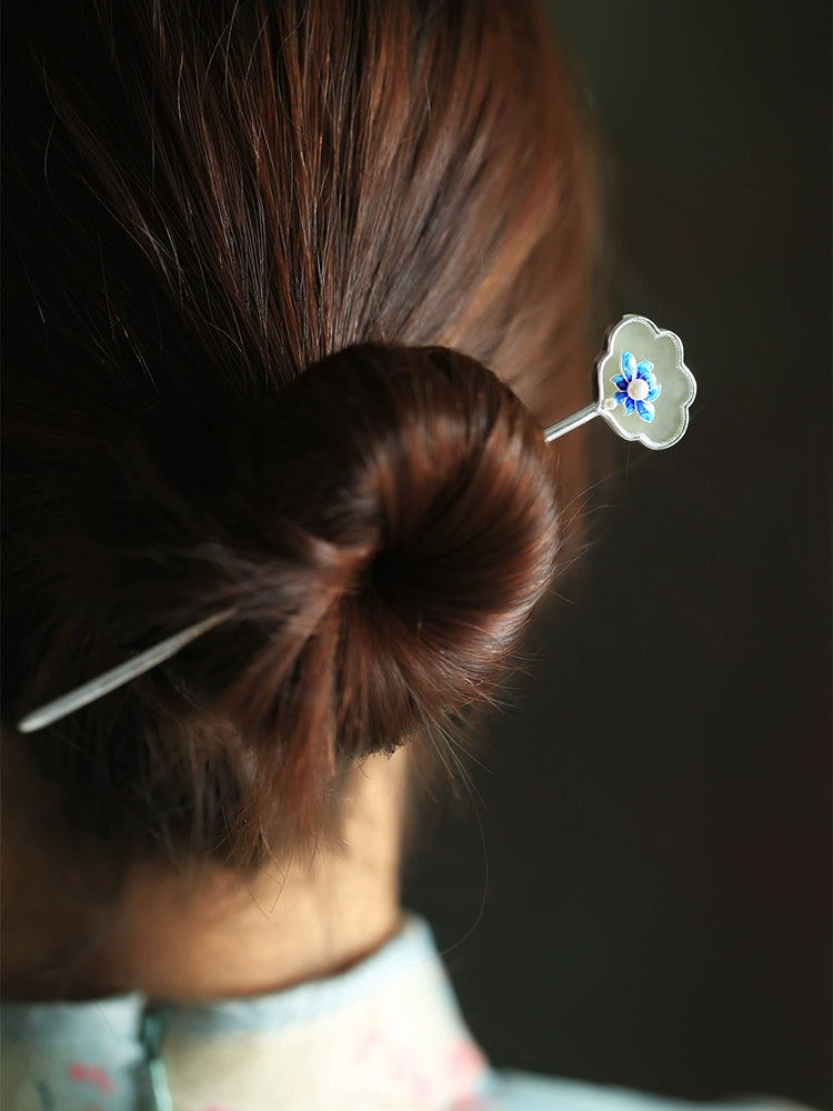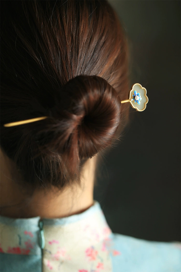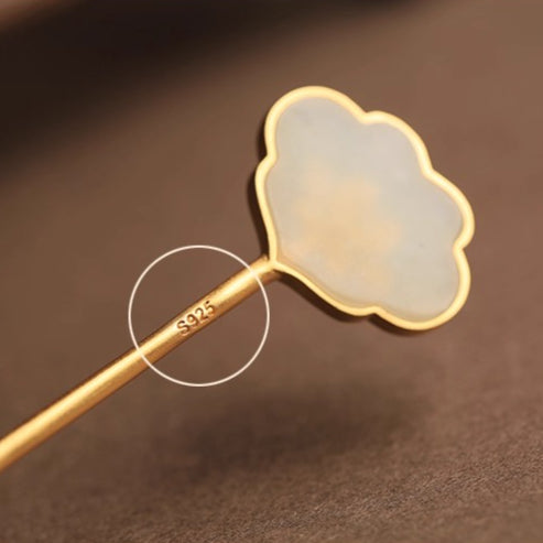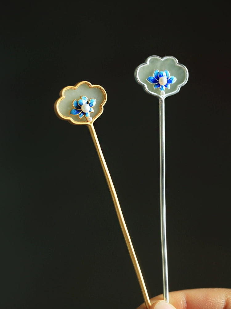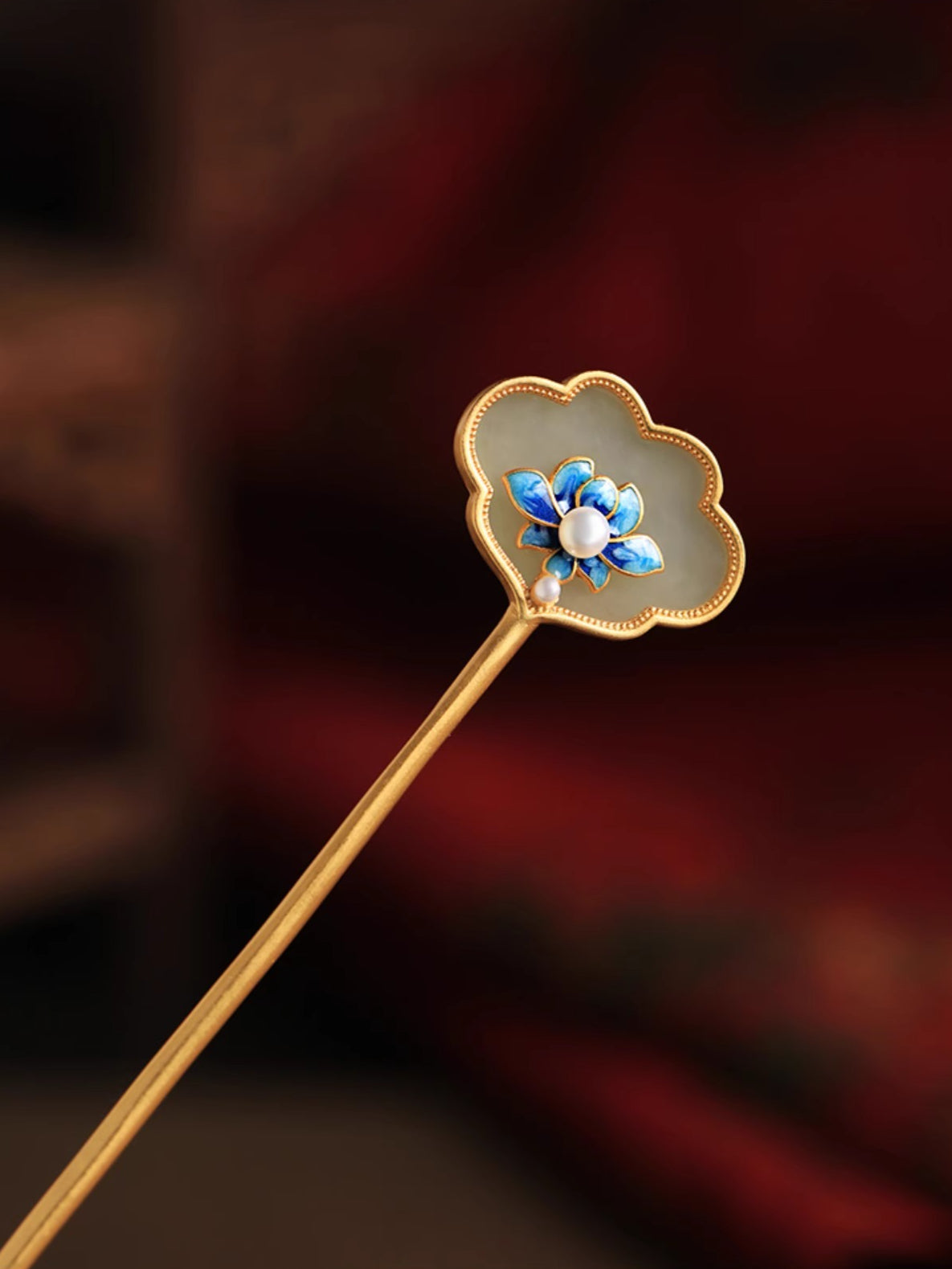 Design: This hair accessory takes lotus leaves as its inspiration and pairs them with natural Hetian jade. The lotus leaf part uses enamel coloring with a gradient effect, which looks really cool. It has inlaid natural Hetian jade and little freshwater pearl accents, making it simple but with a retro vibe. The whole piece is S925 sterling silver with traditional ancient-style gold plating.