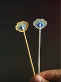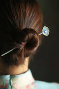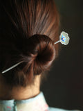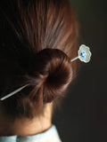 Lotus Leaf Silver Hairpin with Hetian Jade