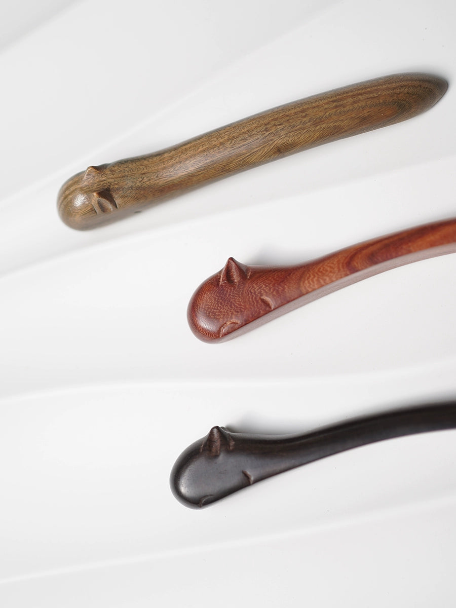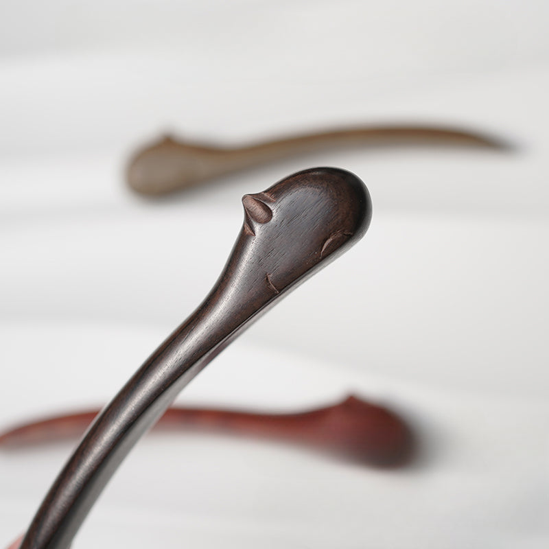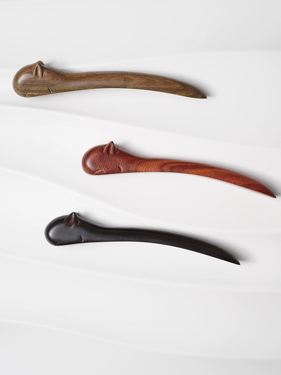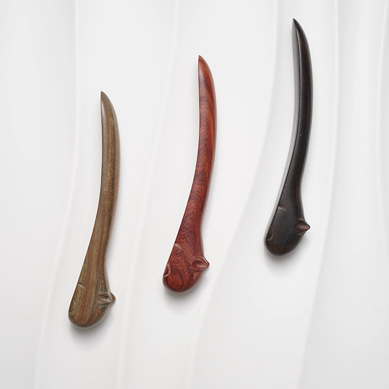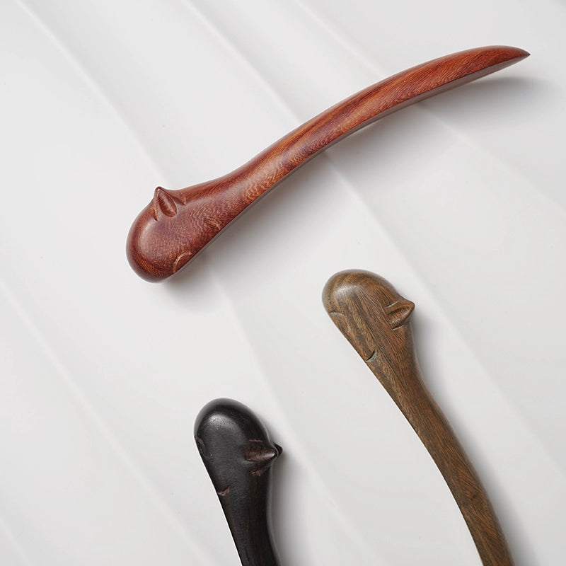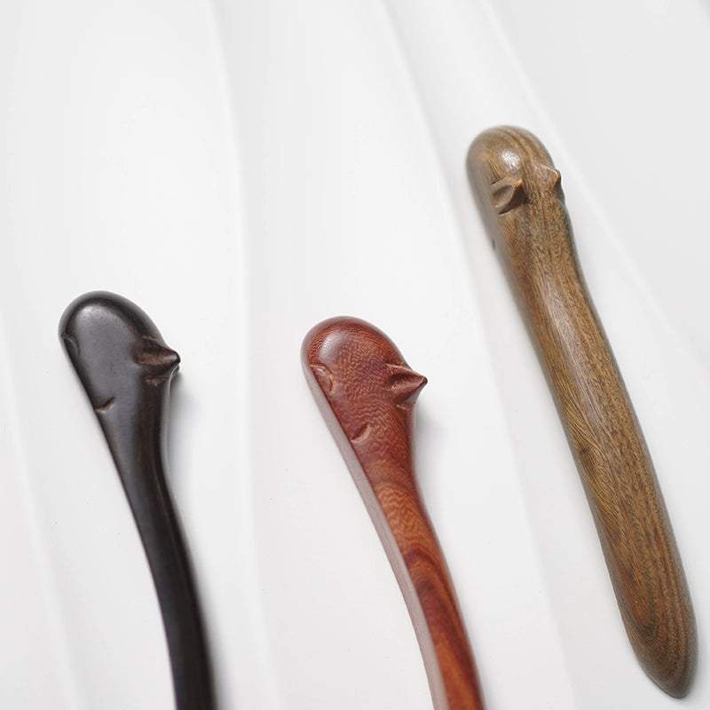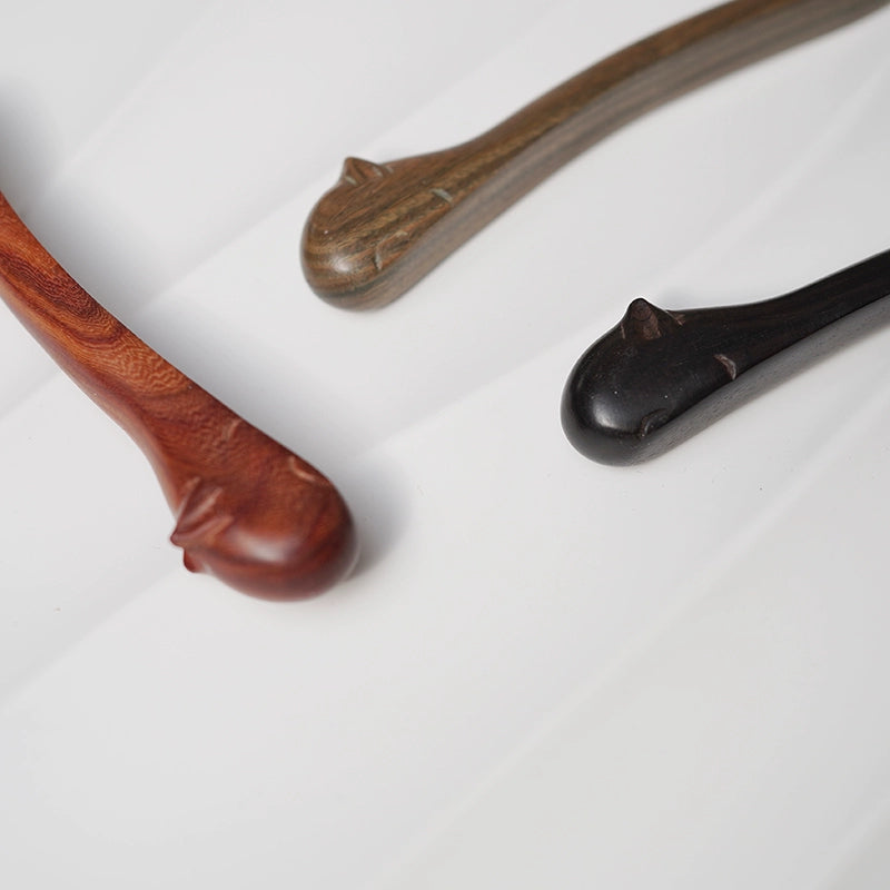 Design: One of the cute animal themed collection, Meow Hair Stick. Made of sandalwood, three colors available. 14 cm short hair stick, suitable for short and thin hair.