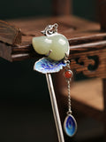 Peacock Hetian Jade Hair Stick with Natural Elements