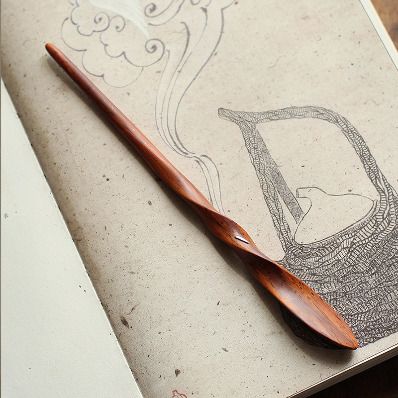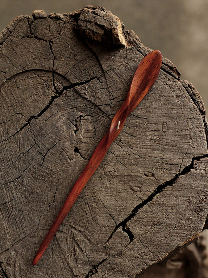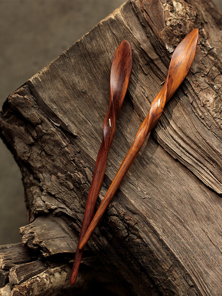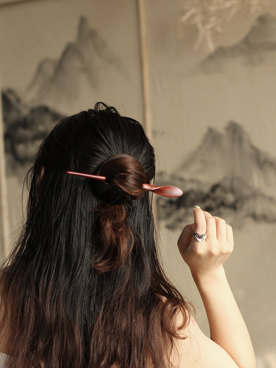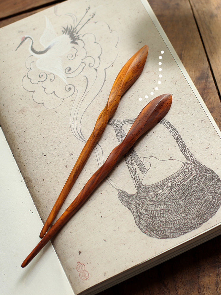 Design: Recently, I've crafted a new hair stick with a design that features three planes intertwining and eventually merging into one. It's named "San Nian," inspired by a concept from Buddhist meditation known as "three mindfulnesses." In essence, it refers to the Buddha's ability to maintain right mindfulness and wisdom when facing beings with three different attitudes, embodying a state of inner calm and focus. By extension, we often encounter people who understand or misunderstand us. We must stay true to our core, not lose ourselves in praise, nor blindly change ourselves in the face of doubt.