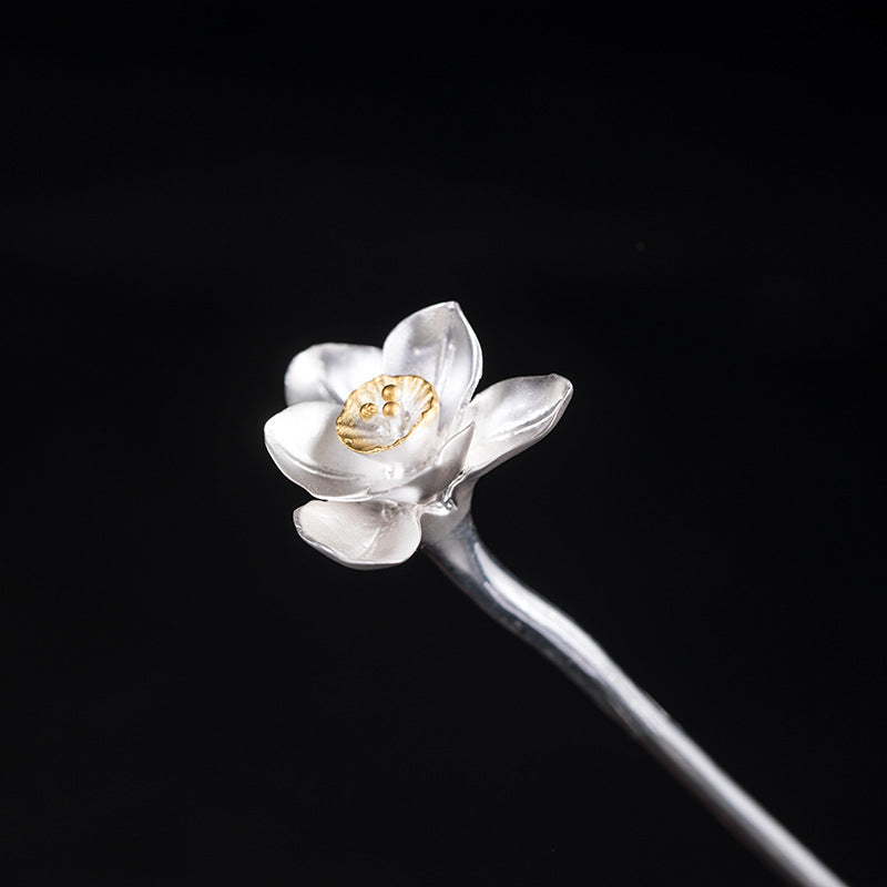 Design: As one of the first plants to bloom after the winter frost, the daffodil symbolizes rebirth and new beginnings. The design of this hair stick is a natural daffodil shape with silver petals and golden flower buds. It looks vivid on the bun.
