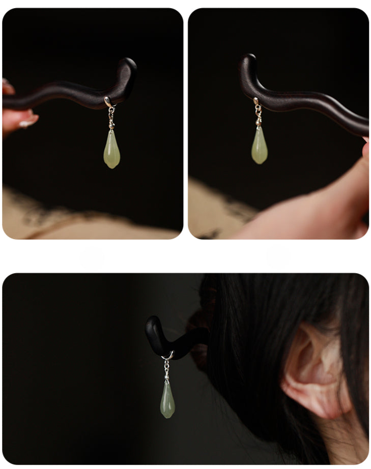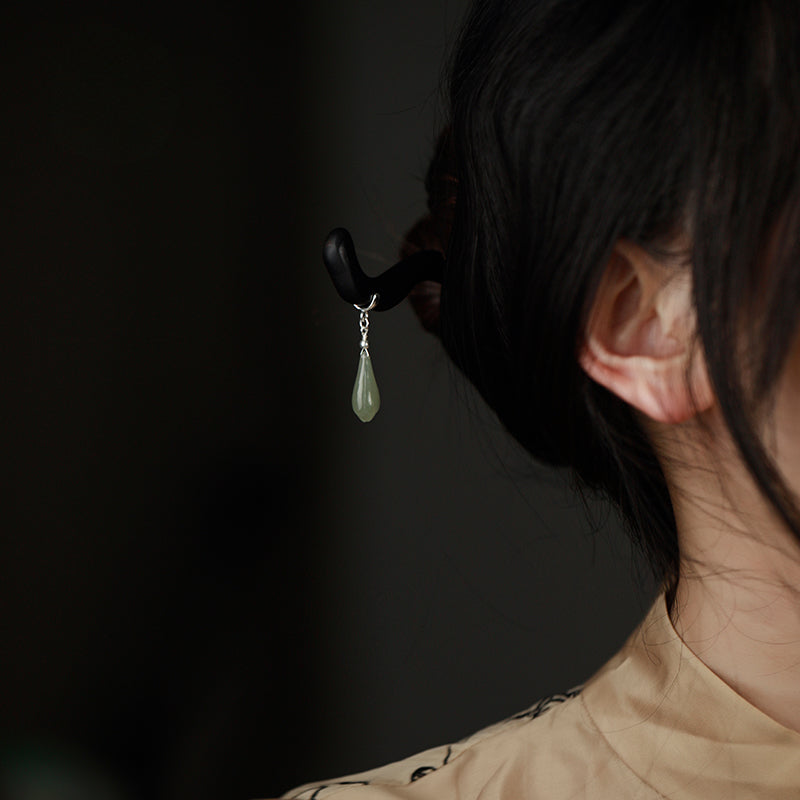 Material: Ebony Wood, Hetian Jade, S925 Silver