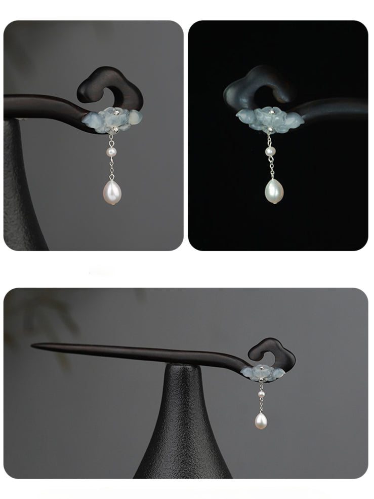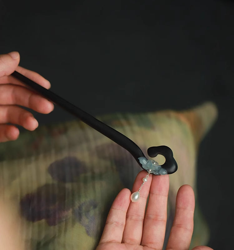 Material: Ebony Wood, Xiuyan Jade, Freshwater Pearl, S925 Silver