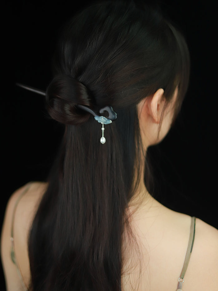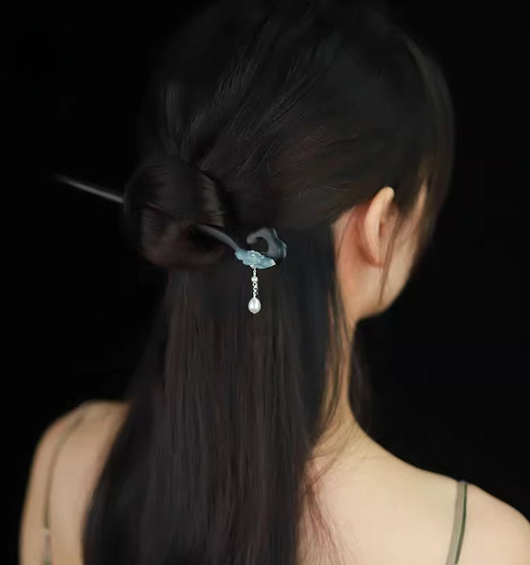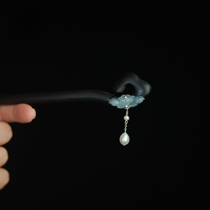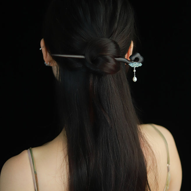 Wooden Hair Stick with Jade Lotus